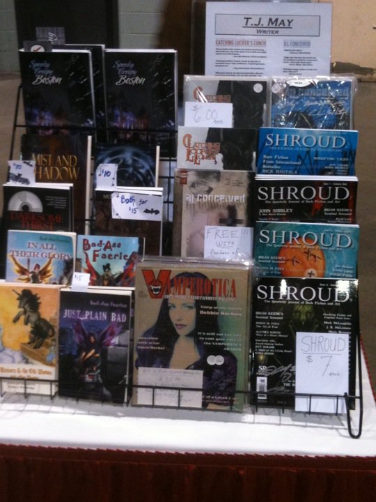 I went to Rock and Shock for the first time with my wife, Stacey Longo (http://www.staceylongo.com/). It won’t be our last. Hung out for awhile at the NEHW table. Danny Evarts, Trisha Woolridge, T.J. May, Kelli Jones and Matt Bechtel were just some of the NEHW members manning the table.