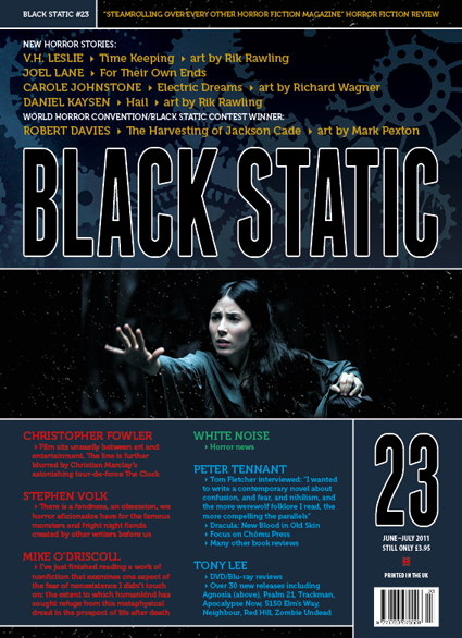 Author Rob Davies story, “The Harvesting of Jackson Cade,” won the Black Static/WHC 2011 Short Story Contest and will appear in Black Static #23. The magazine is now available at http://ttapress.com/blackstatic/currentissue/