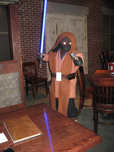 You see a lot of good ideas here, such as raising money for charities– for example, the Ghostbusters of New Hampshire, who go to cons as their favorite movie characters, complete with heavy packs and gear for dealing with paranormal occurrences. They pay their own way, and make appearances and accept donations from attendees which all go to a specified charity. At the event, they were raising money for the victims of the Boston Marathon bombing. The Delorean Time Machine is doing something similar, and making appearances to raise money for the Michael J. Fox Foundation.