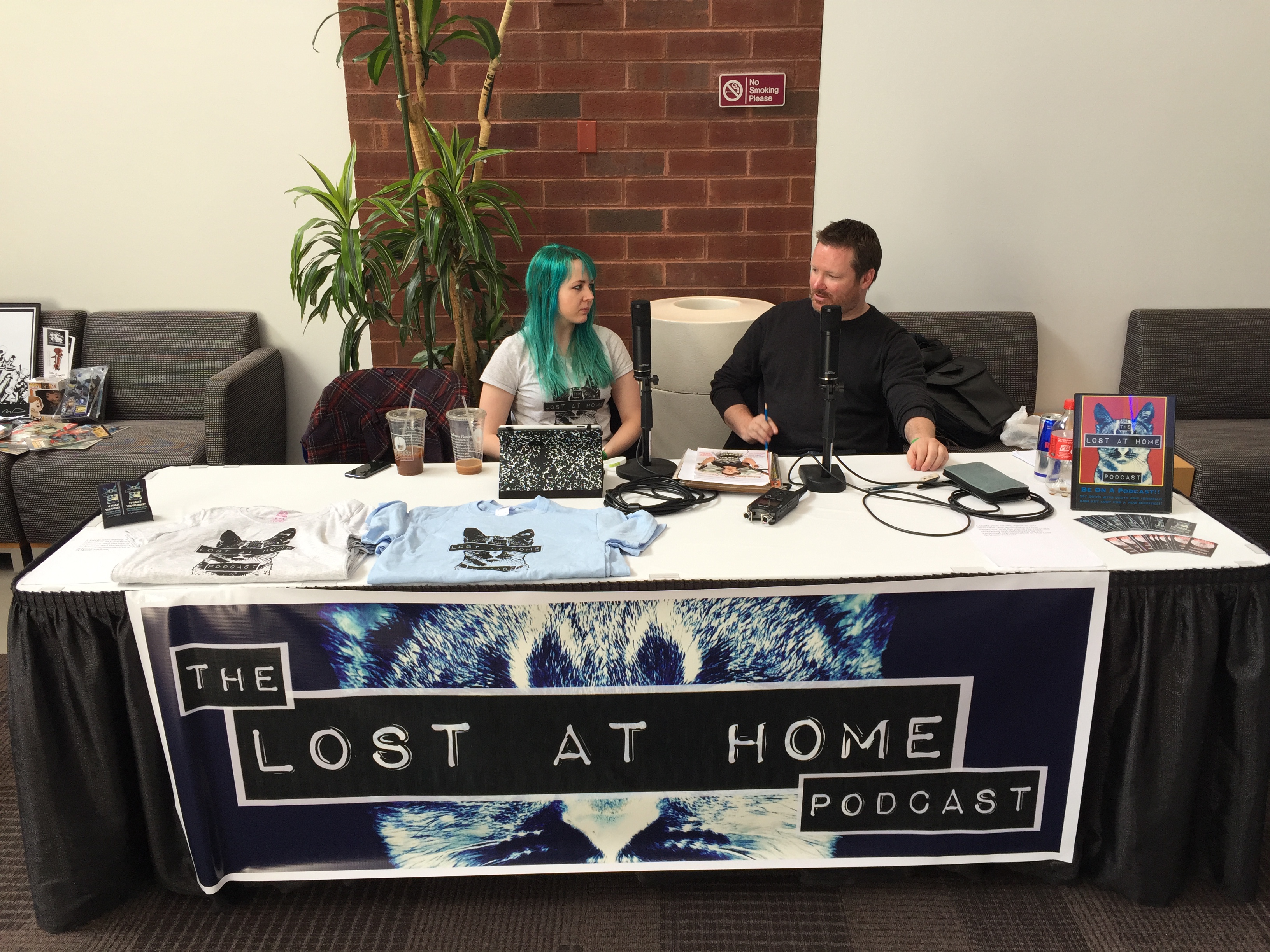 The Lost at Home podcast table.
