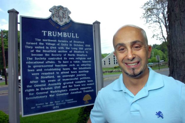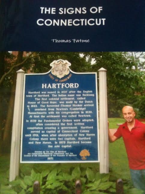 Author Thomas Fatone took over 15 years to complete his book, The Signs of Connecticut. It took him 13 years to drive around the state taking the pictures of all the blue town history signs and another two years to write the book, he said.