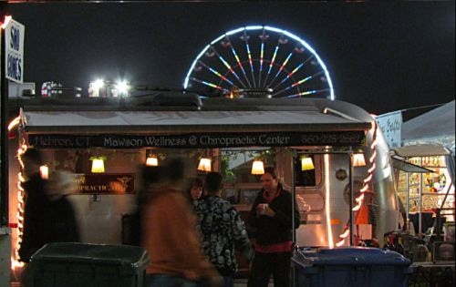 With my battery charged, I took the opportunity to take in the fair through the eye of my camera’s lens. I snapped pictures of the nearby Soft Serve ice cream vendor. I took a long shot of the ferris wheel. I even snapped one of a chiropractic booth. I took others. Here’s one of Jason doing his best H.P. Lovecraft imitation.