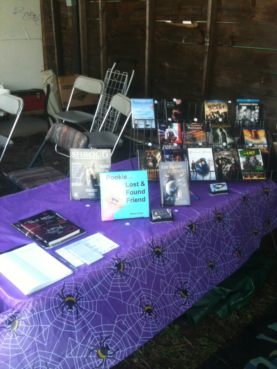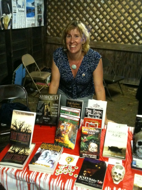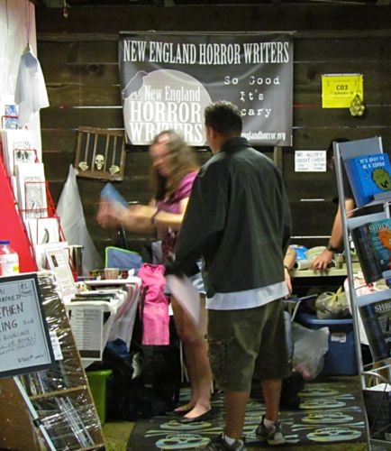 This is how I always answer: I enjoy investing in my writing career, and most of that money goes to publicity — which often includes attending events, like being part of the New England Horror Writers booth at the Hebron Harvest Fair this past weekend. Do I expect to make a huge number of sales? Not really. I do it to get my name out there and to meet people directly — something that pays off in the long run in more ways than just monetary. I spent five years writing for a public relations firm, so I know a little bit about the value of second endorsement — that’s why social media has exploded the way it has. People are much more likely to buy something if their friends tell them to than if they see it in an ad.
