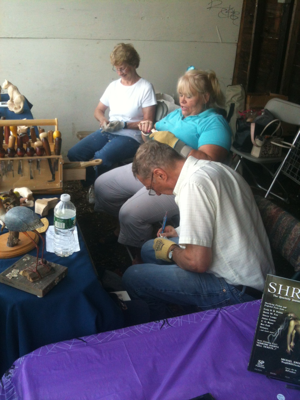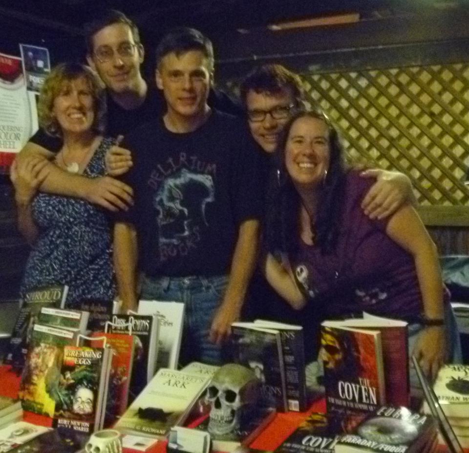 “I had an amazing time on Thursday night and Friday at the fair, working the NEHW table. Thursday might have been damp and raining, but lots of people came out, more so on sunny Friday. The pre-advertising paid off, as a number of folks searched us out. The concept of an organization of New England writers, though not foreign to all of us, was a new concept for many and we had a lot of great discussions on the topic, and showing folks the wide variety of styles, from novels to story anthologies to comics. One major and effective tool were photocopies of Kristi Petersen Schoonover’s short stories, which Stacey Longo handed out to people passing by. We even had someone come back looking for her to tell her how much she loved the story. Writers: think of this next time (I will for sure), it was a great giveaway item! Again, special thanks to Jason Harris and Stacey Longo for opening their home to us all, and for working tirelessly even weeks beforehand to make this an extremely enjoyable time for everyone.