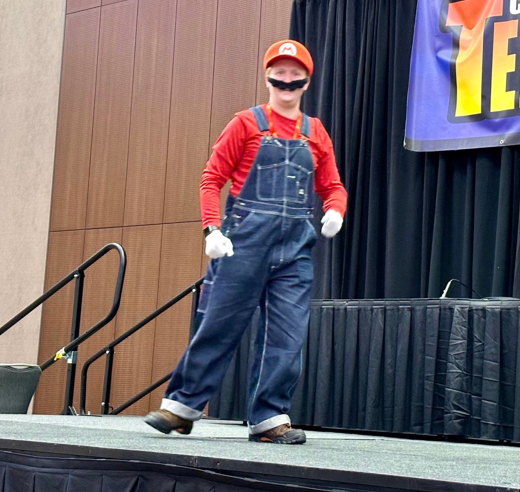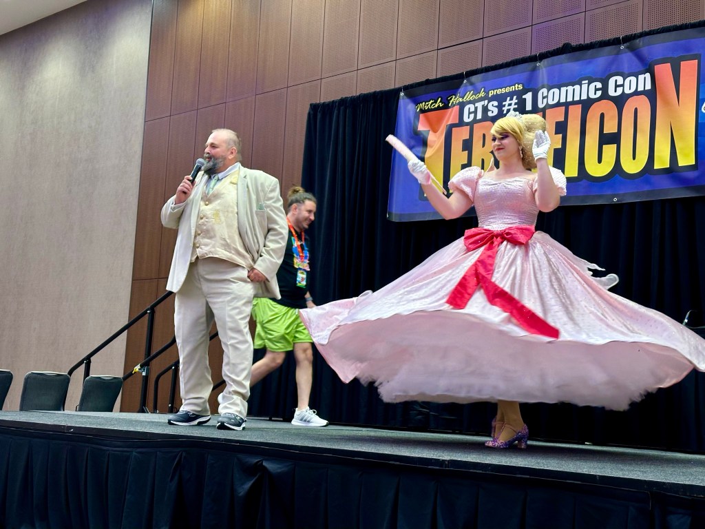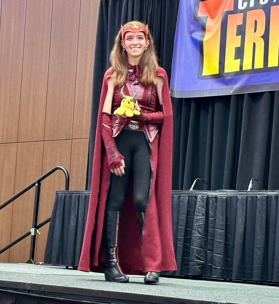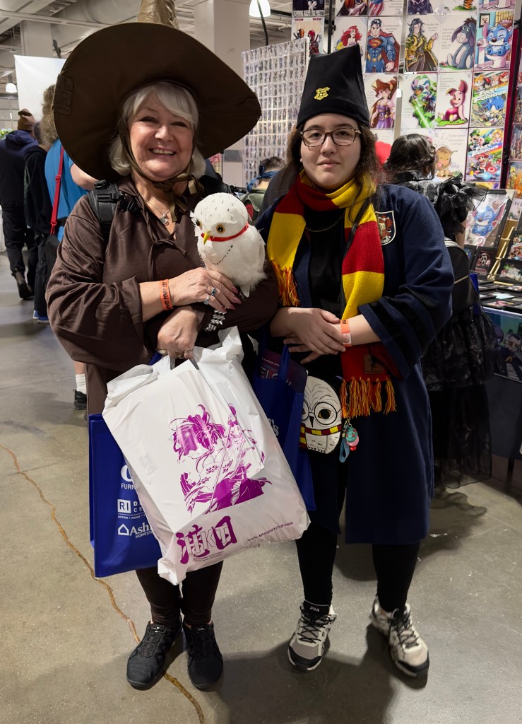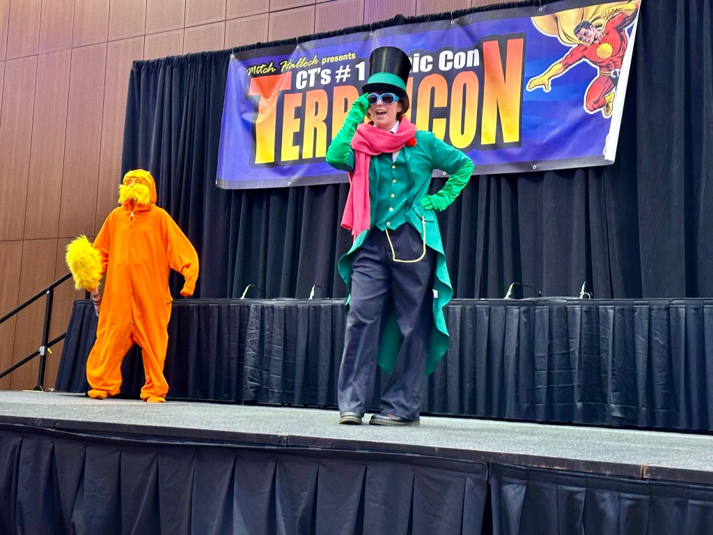 Mirabel and Daredevil. Spider-man and Wednesday Addams. Rogue, Wonder Woman, Scarlet Witch, and The Punisher. The Predator and a Bounty Hunter. Author Christopher Paniccia. Tik-tok. Wizards. The Mandolorian. Batman and Robin. Poison Ivy and the Riddler.