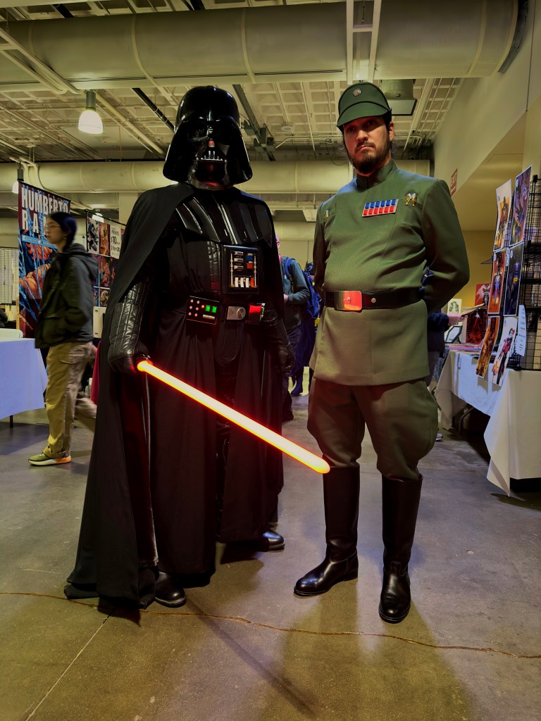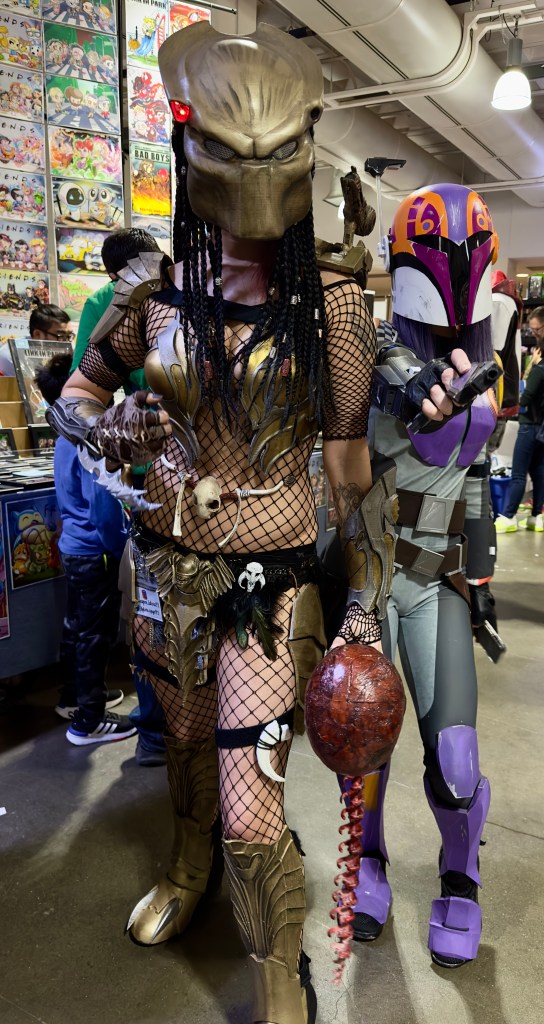Jason Lee. Predator vs. Alien. Maleficent and Sally. Moon Knight. The Spider people. Gary the BBQ Chef. Loki and Wanda.The Mandalorian. Toad and Velma. Peter Weller. Mitch Pileggi. Starlord and Gamora. Author R.K. Bentley.A Dalek with the Doctor.