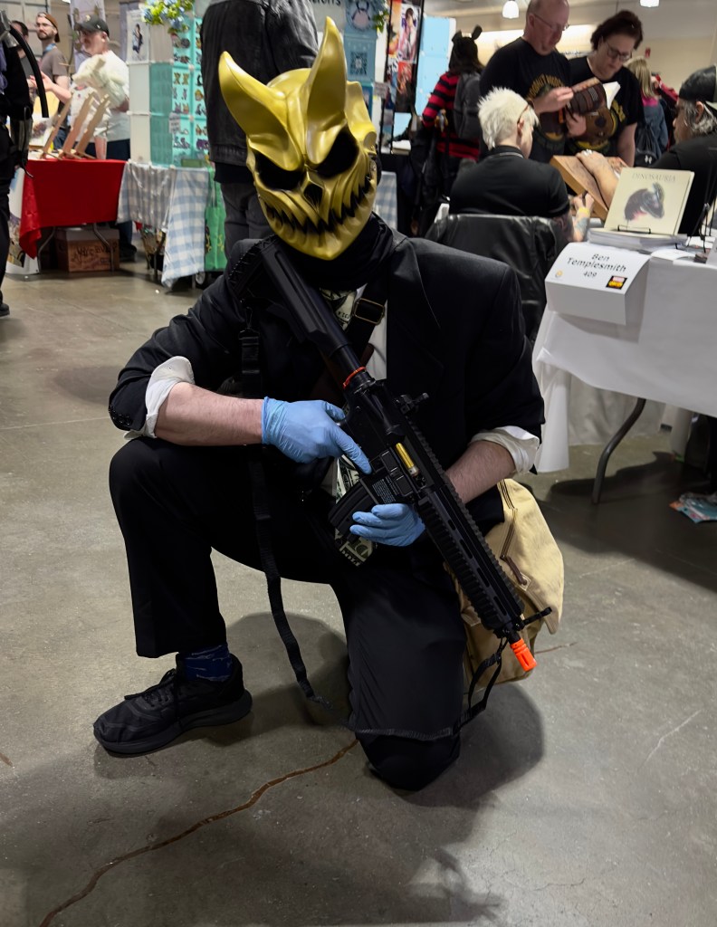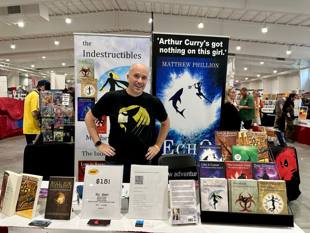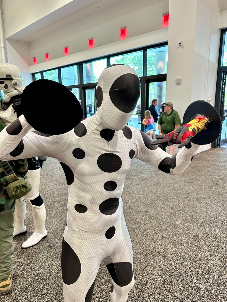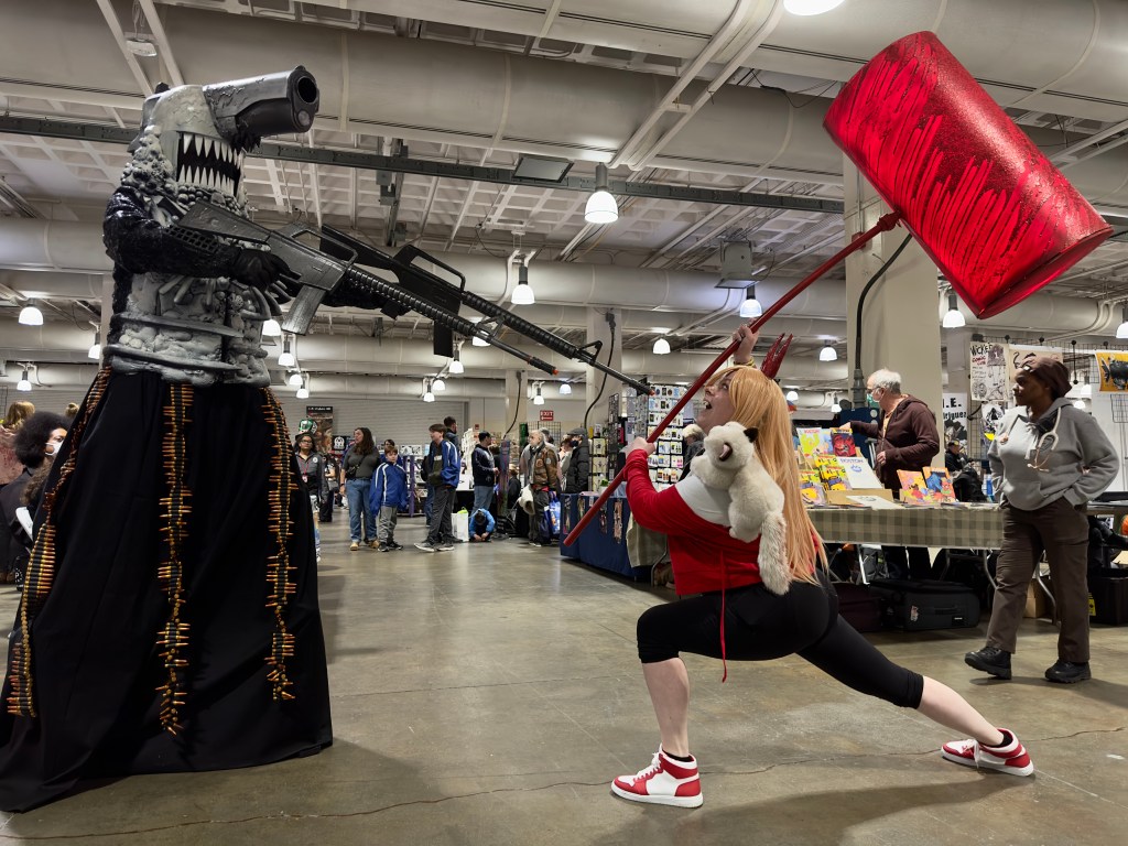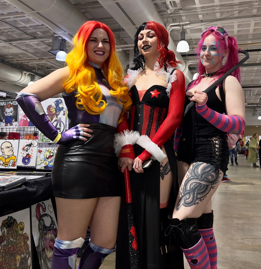 Tom Welling. Marvel Jesus Deadpool.Velma Dinkley.The Fantastic Three. Captain Marvel. Beetlejuice. A Xenomorph.Author Mike Spring of Ottatime Comics. Dr. Evil and Austin Powers. Writer/artist JaVon Stokes. The Mandalorian. Rey Skywalker.The Mighty Mascots creator Keith Gleason. Deadpool, Lady Deadpool, and Wolverine skeleton. Illustrator Jason May.