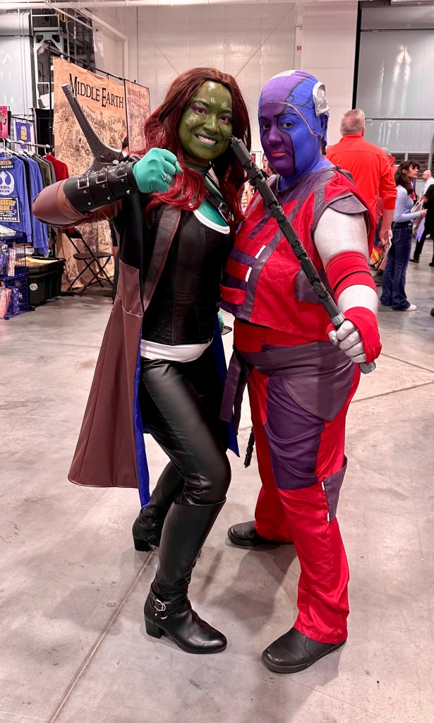 Gamora and Nebula. Harley Quinn. The Crow.Author Matthew Phillion.The Spot. Ant-man and Thanos. Artist Chris Claremont. Mario. Cooper Andrews. Terry Farrell talking with Anthony Michael Hall. Lorax and Once-ler. The Scarlet Witch.