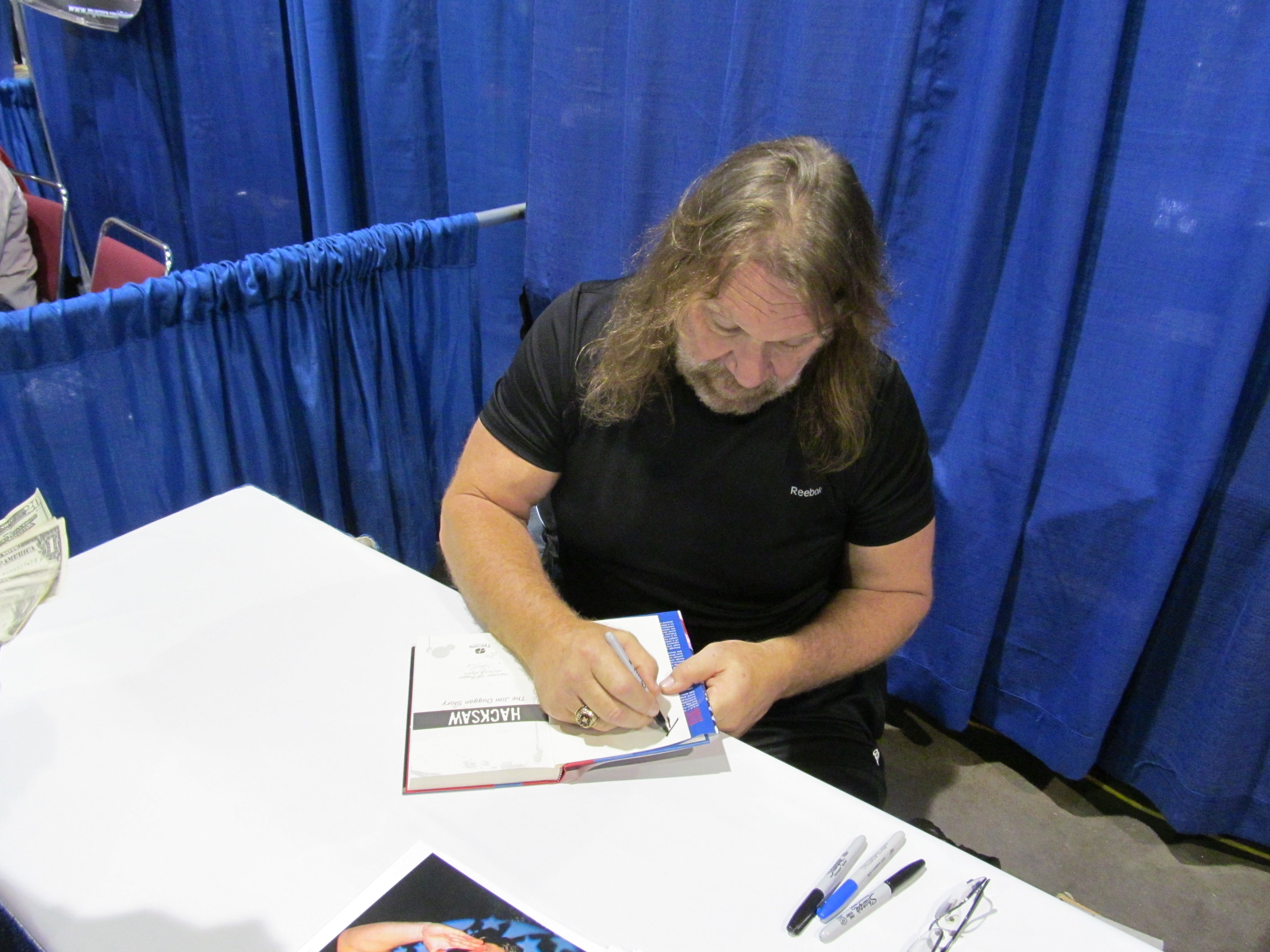 Joe was thrilled to get a stack of book autographed by iconic horror artist Bernie Wrightson, and I bought a copy of Womanthology as a birthday present for my wife and got it signed and sketched in by eight of the contributing artists.