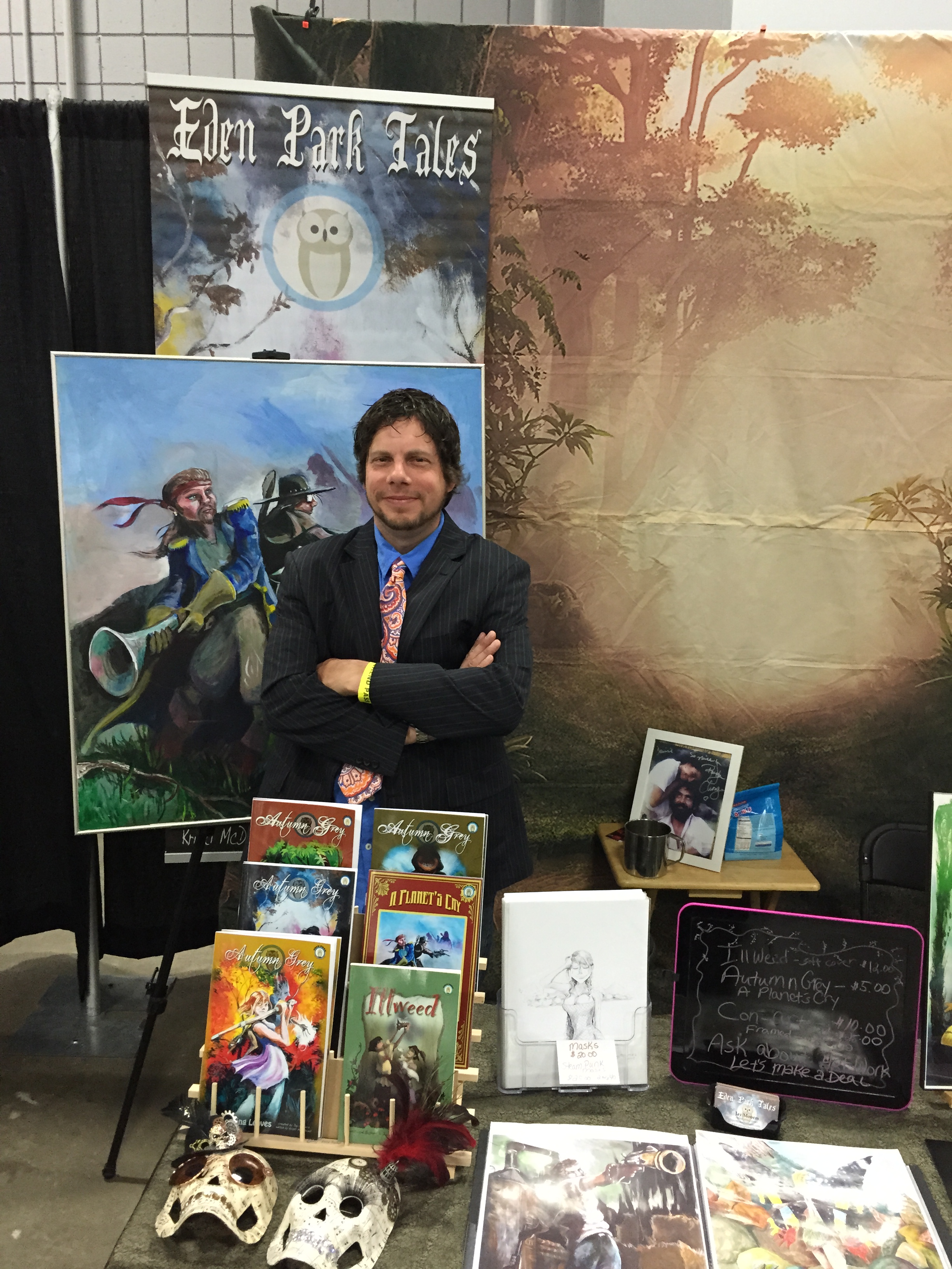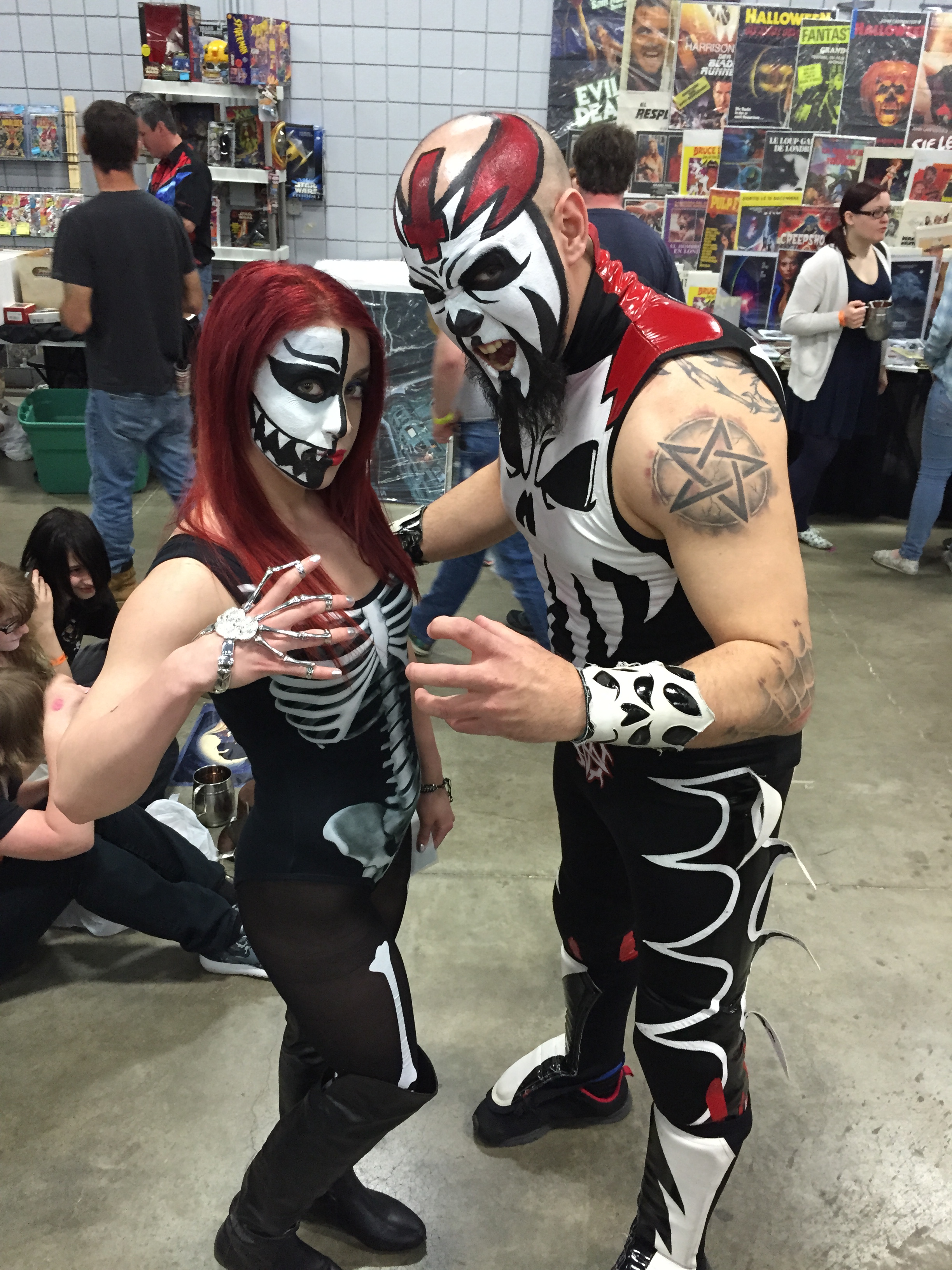 There were other writers as well, most notably a contingent of the New England Horror Writers. Rob Smales, one of those selling books with the group, said that there were “a metric butt-ton of good writers in the New England area– some seriously creative people.” Earlier in the day, he’d gone around the event with a death mask on to scare up some business.