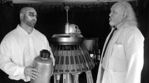 All three members of Butterfleye Films worked on the production. Diana wrote the film’s music and synopsis and did visual effects. Brian Thone made all of the props, including Dr. Housen’s nuclear reactor, and did zombie makeup. Steve Bednar helped create the film’s concept and plays Sheriff Ed Wood, the story’s hero, on screen.
